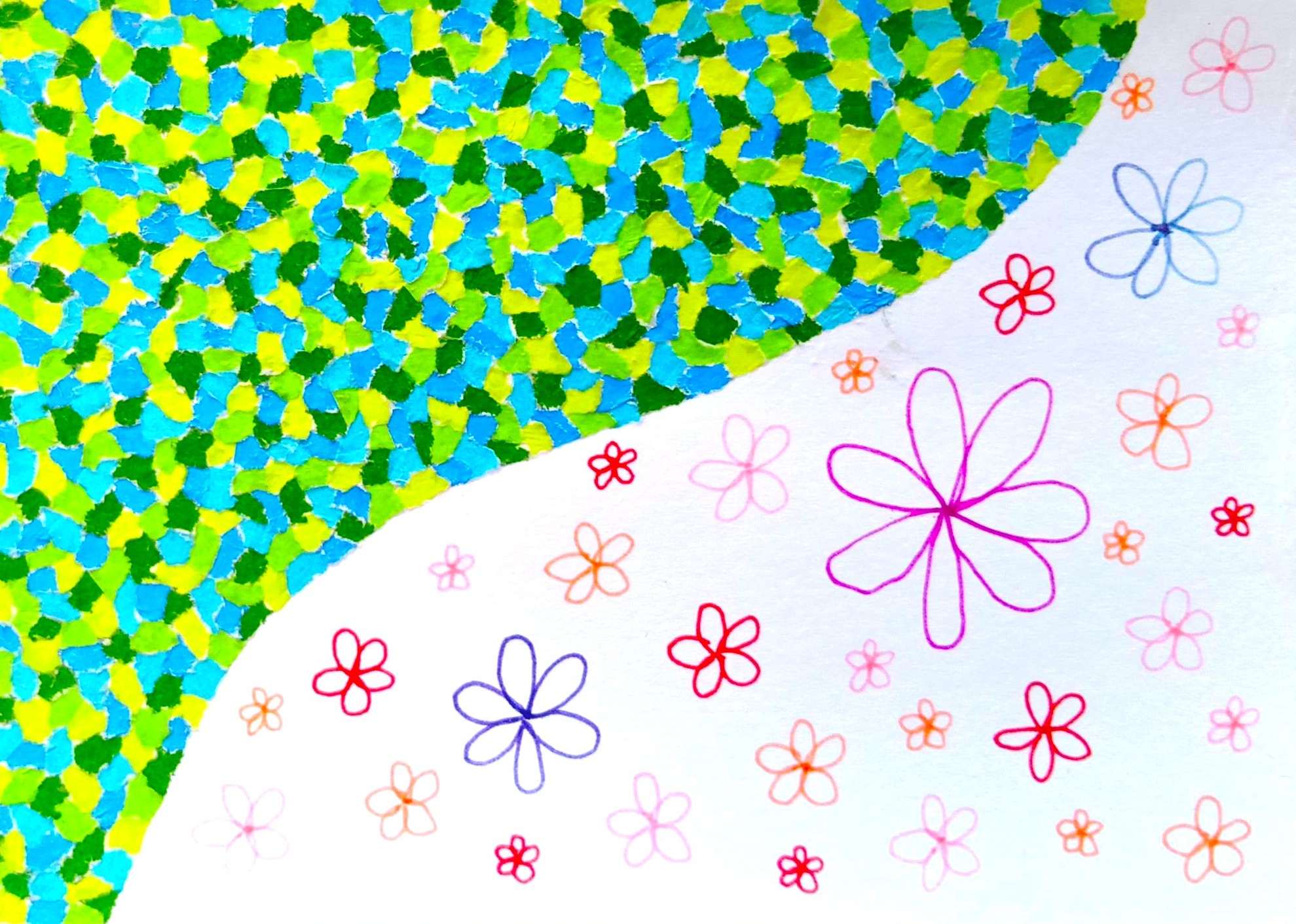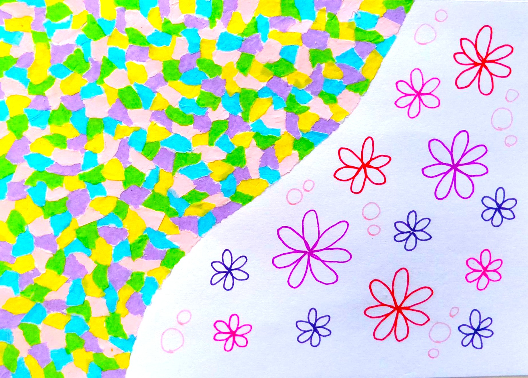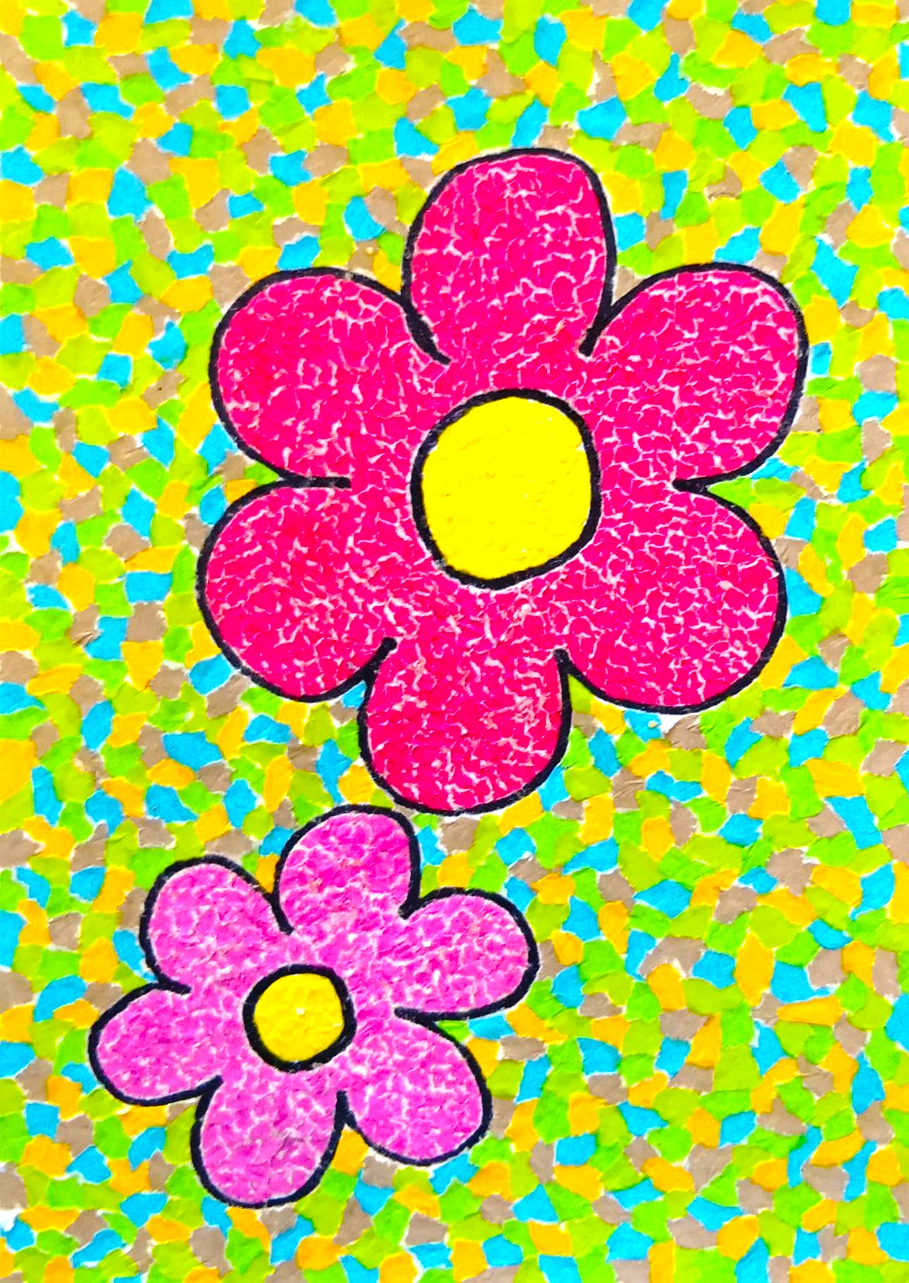 ※ のんびりラテさんの作品はちぎり絵(貼り絵)です。